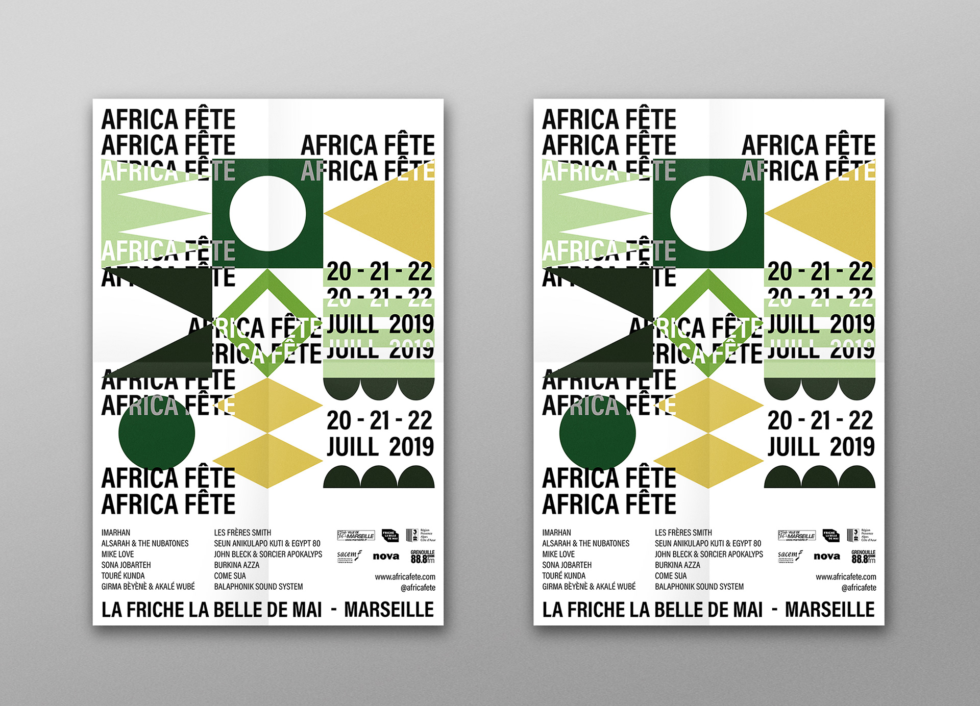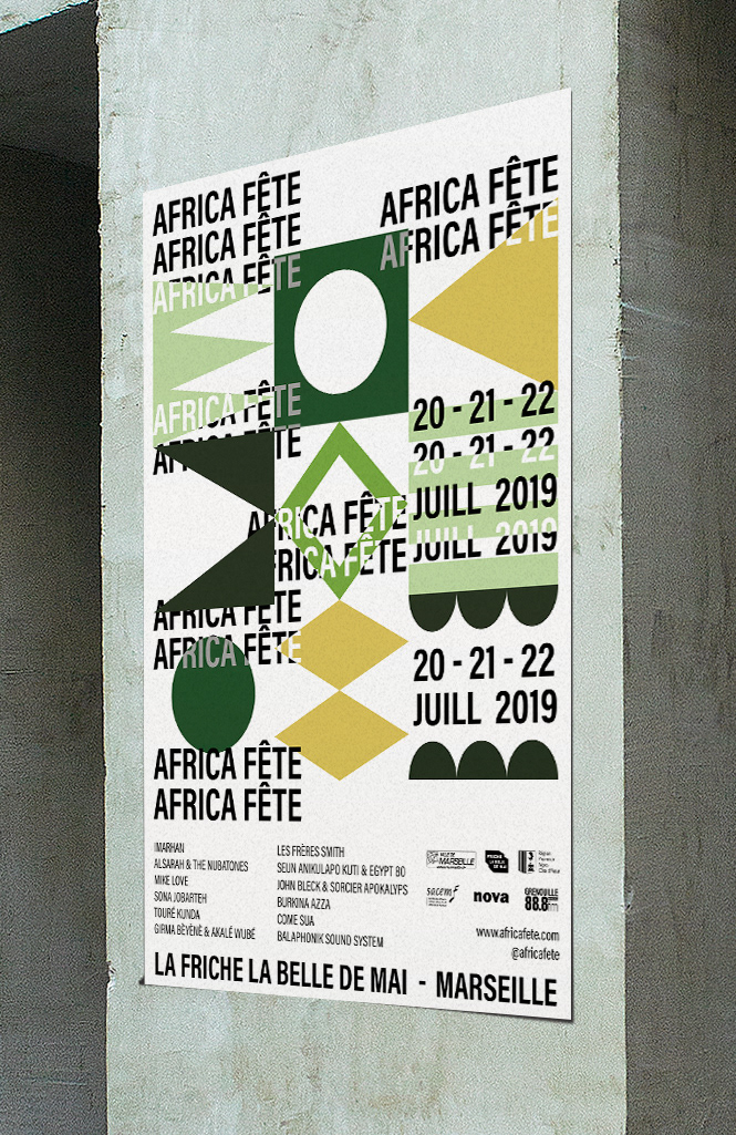 Création d'un système graphique modulable pour la nouvelle édition du festival Africa Fête Déclinaisons différents supports 2018