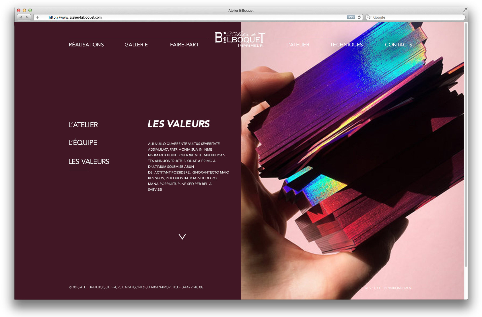 du site web de l'imprimerie L'atelier du Bilboquet