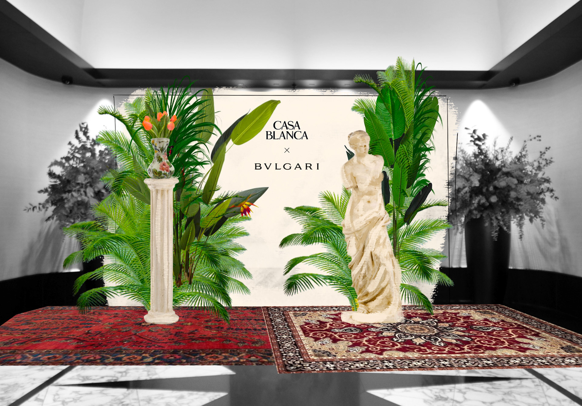Direction Artistique et proposition de scénographie pour le dîner et la soirée de présentation de la nouvelle collection capsule Casablanca x Bvlgari 2021