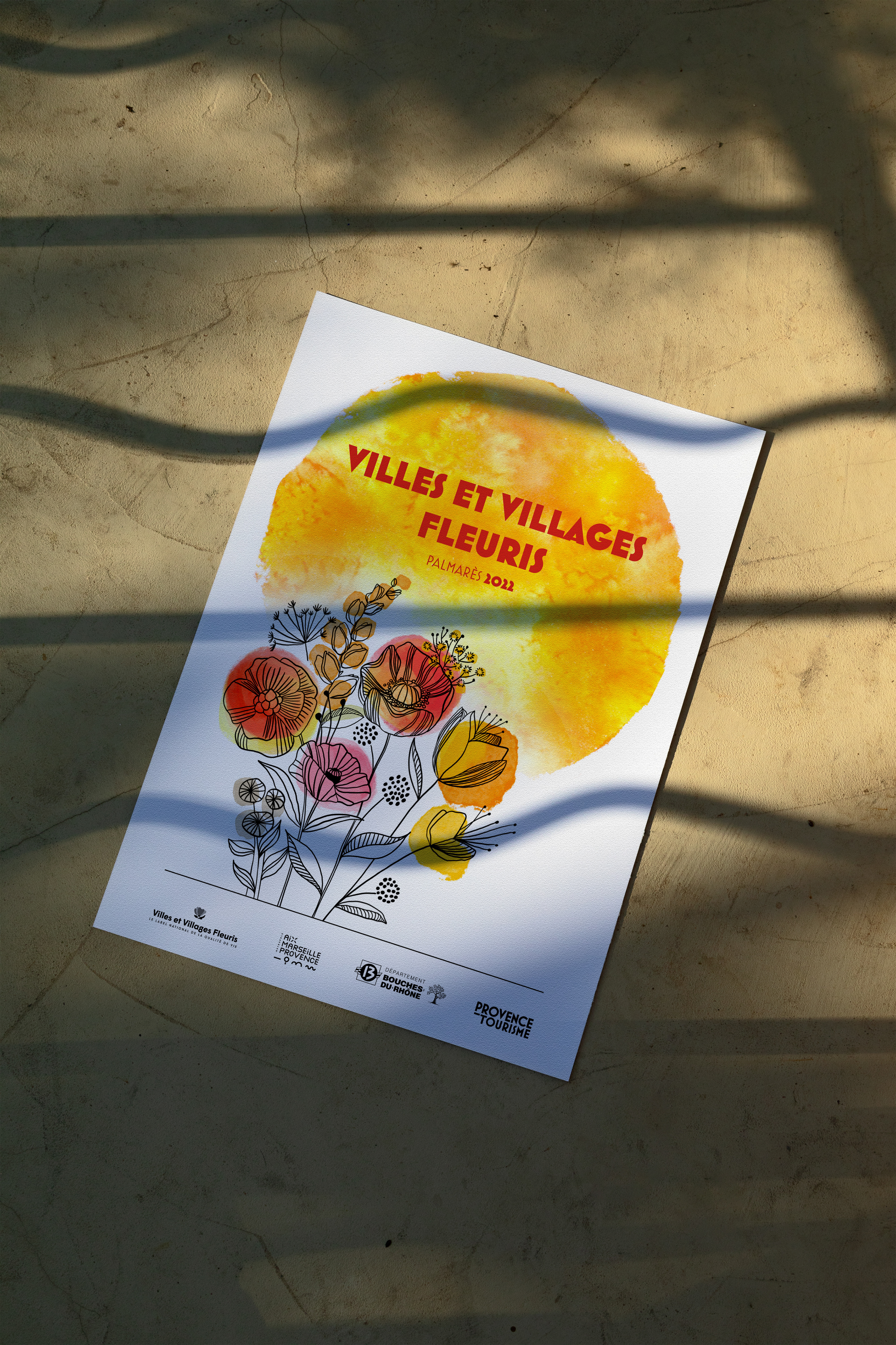 Direction artistique et création graphique du visuel du concours Villes et Villages Fleuris édition 2022, déclinaisons multi-supports 2022