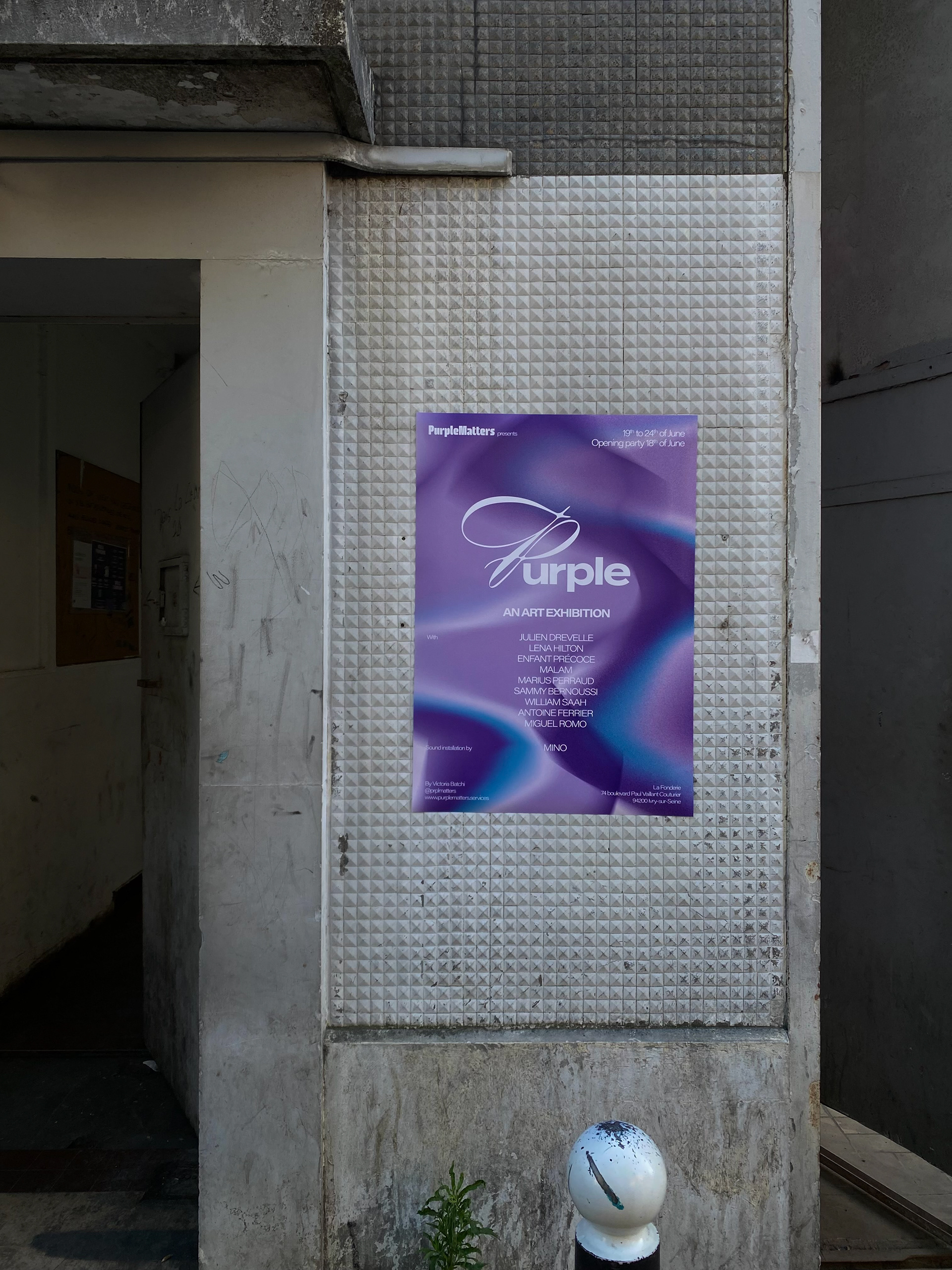 Art direction and graphic design for the latest Purple Matters's exhibition curated by Victoria Batchi 2025 - Paris